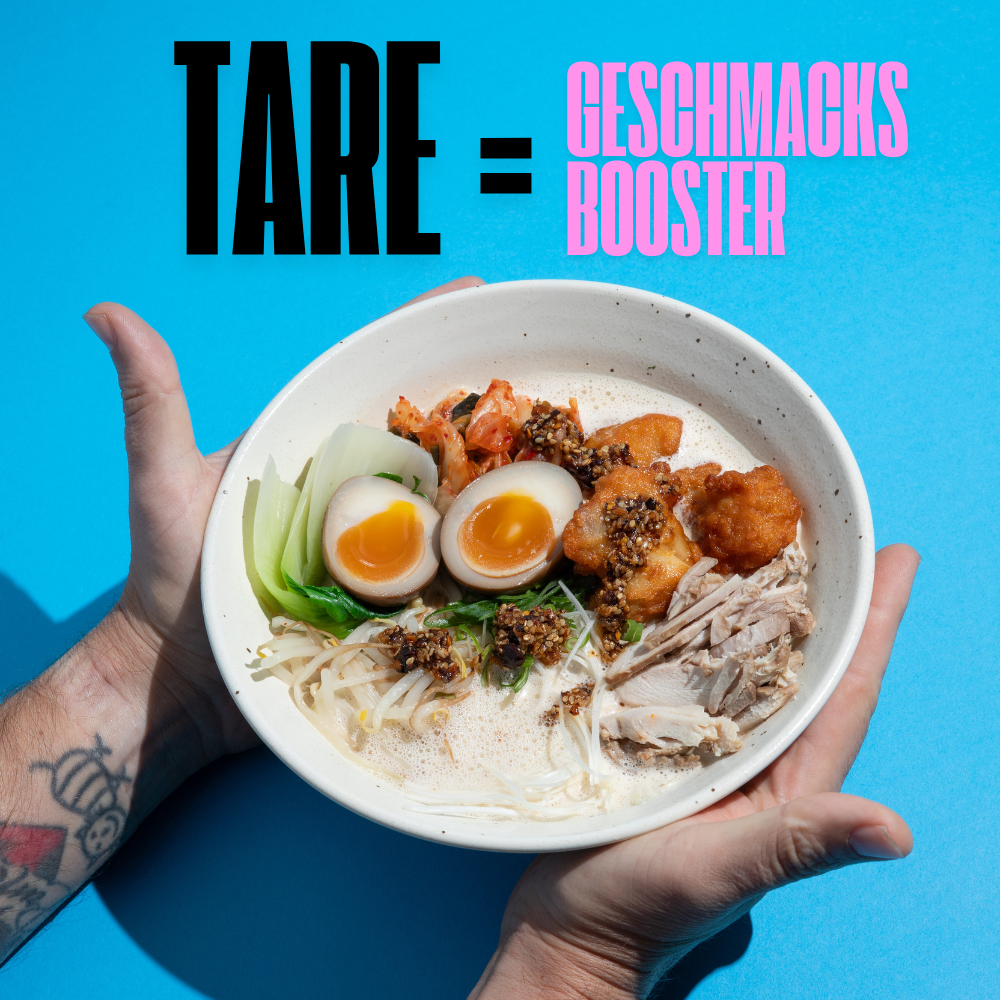 Je nach Ramen Variante wandern z.B. Gemüse wie Pak Choi, Mais, Pilze, Hackfleisch oder Chashu, marinierte Eier und Frühlingszwiebel in die Bowl. Für das ultimative Finishing empfehlen wir unser berühmtes Spicy Chili Crunch oder Peanut Soya Rayu obendrauf. Aber natürlich sind euch da in eurer Kreativität keine Grenzen gesetzt. Erlaubt ist, was schmeckt ;)