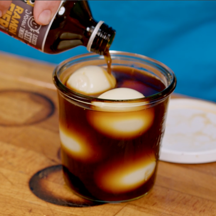 The garlic for our Black Garlic Shoyu Tare ferments for weeks until it finally takes on the typical black color and takes on a wonderfully aromatic fusion with soy sauce, caramelized ginger and chili. Then it is stirred gently and for a long time until all aromas and flavors have been transferred to the sesame oil and then heated to a maximum of 50 degrees. The Black Garlic Shoyu Tare not only spices things up, it actually determines the character of your ramen broth. A little bonus tip from Jörg: For ramen, simply place soft-boiled eggs in the tare overnight - a treat!
