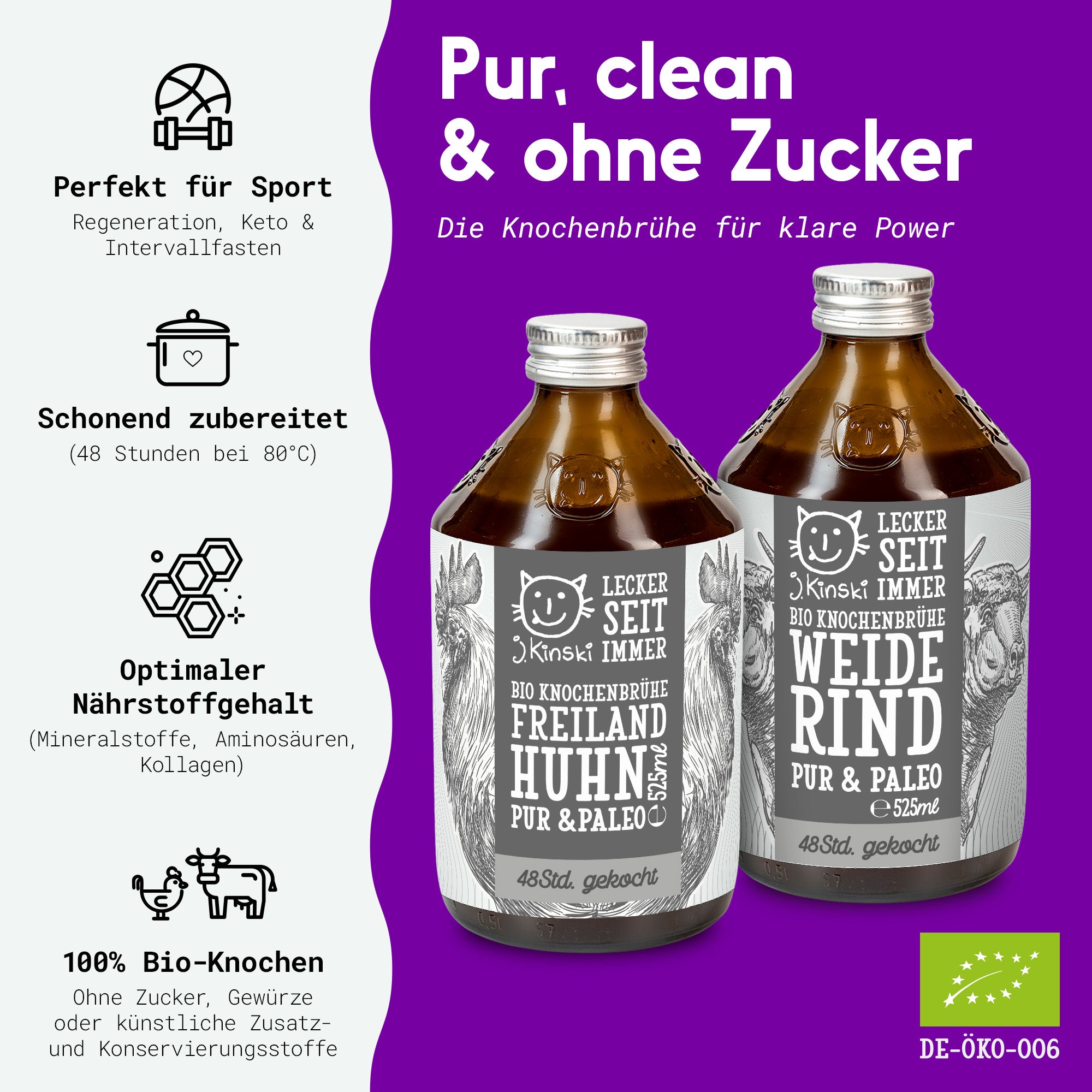 Die Pur & Paleo Linie verzichtet komplett auf Zucker und andere nicht zwingend notwendige Inhaltsstoffe. Das garantiert den höchsten Gehalt an Kollagen, Aminosäuren & Nährstoffen.